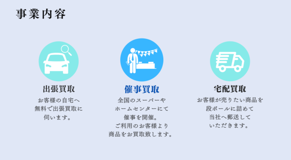 もちろんです!「催事買取」はちょっとした買取イベントみたいなもので、全国のスーパーやホームセンターでやっています。「出張買取」が自宅にお邪魔して商品を買い取るのに対して、「催事買取」はお客様が普段のお買い物のついでに寄れる場所で開催するんですよ。だから「ちょっと気になる」といった感じで立ち寄っていただけます!